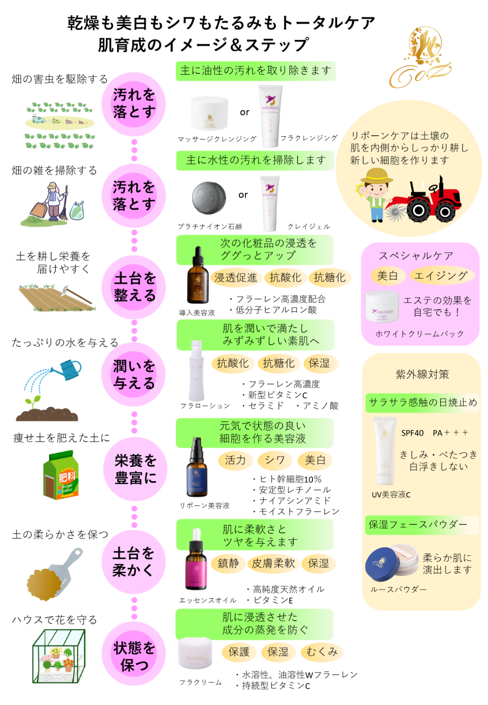 水溶性フラーレン+APPS(新型ビタミンC)ですべての活性酸素を除去、アルンカ花エキスがお肌をひきしめみずみずしさを与えてくれます。